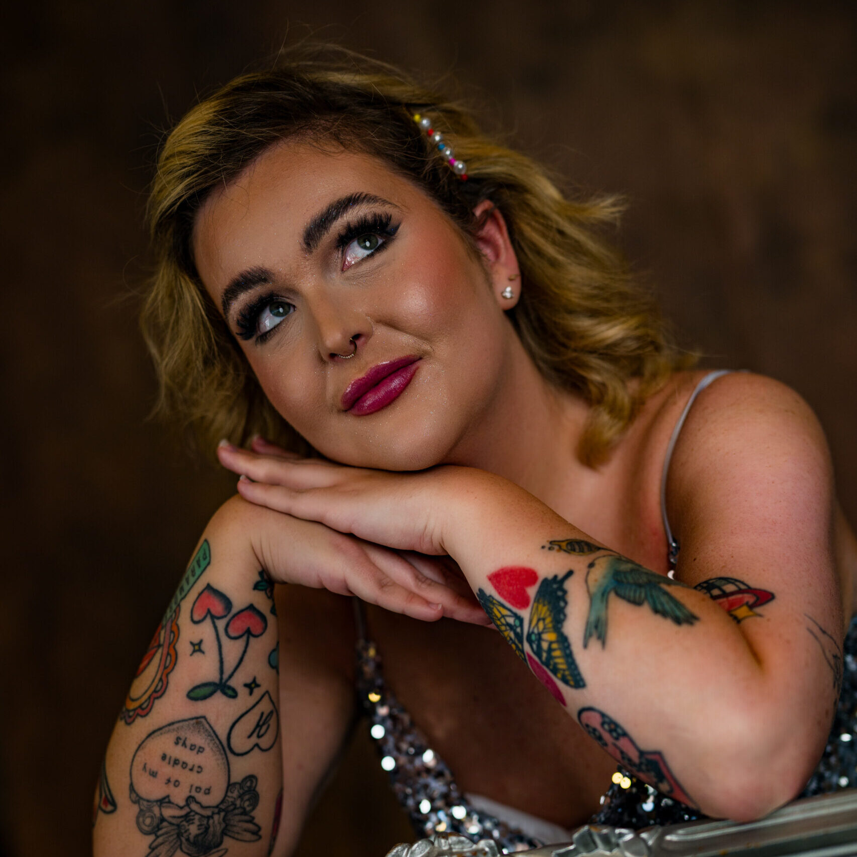 Lily Visage was born from the first time she stepped foot into a drama class. Lily describes herself as the love child of Michelle Visage and Lily Savage. Meaning she’s got a sharp tongue and even sharper eyeliner. Loves leopard print and will take home any faux fur coat that’s not tied down. Lily is a plus size queer cis white queen.